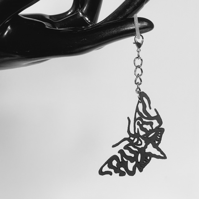 ナカムラルビイの屋号、RUBY and moreの、あの蛾ちゃんのチャーム アンブレラマーカーとして使うもよし、電子タバコや文具につけるもよし、シリコンリングを外せば、カバンのチャームにもお使いいただけます。 size:約6cm*3cm チャーム長さ3cm リング内径約13mm 細かい部分の繊維状(糸引き)のものは、3Dプリンタ出力時に発生するものです。 極力取り除いておりますが、ハンドメイド作品のため個体差があります。